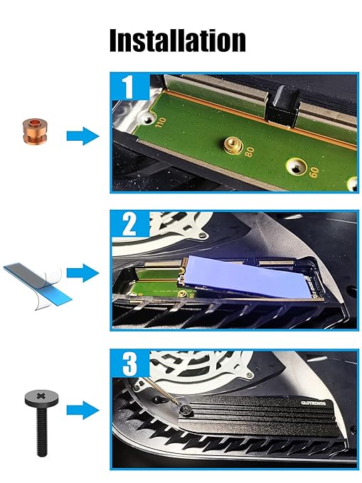 GLOTRENDS PS5HS PS5 SSD用ヒートシンク、銅製ヒートパイプと取り付けネジ付き
