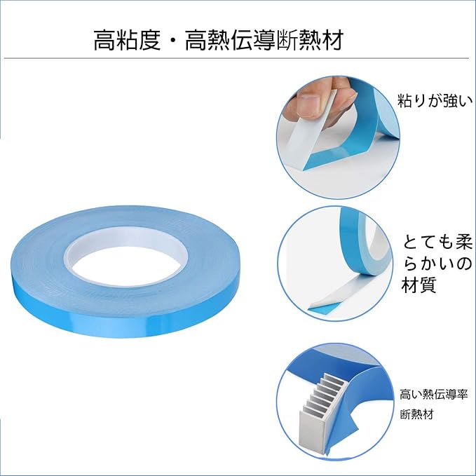 熱伝導性の良い両面テープ:両面粘着、特にLEDストリップの接着・固定、LEDアルミ基板の熱伝導・放熱に適しています。 M2ハードディスクNVMEハードディスク冷却などの電子部品にも放熱効果があります。