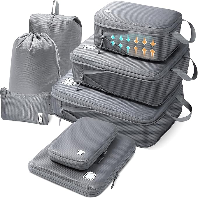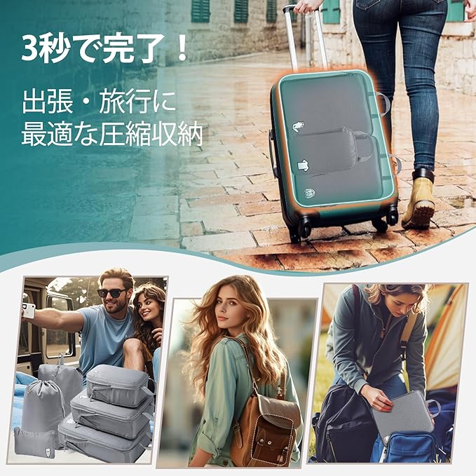 Samfolk 旅行用圧縮袋 トラベルポーチ 旅行圧縮バッグ 8点セット 圧縮ポーチ パッキングポーチ 衣類仕分け 旅行 出張 便利グッズ 大容量 防水 小物入れ トラベルセット 下着収納 巾着袋 スペース節約