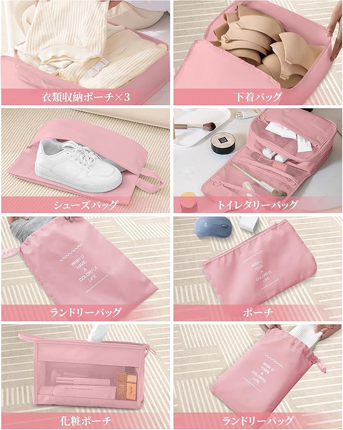 トラベルポーチ アレンジケース 10点セット パッキングポーチ 洗面用具 旅行用 出張 衣類 整理 便利グッズ 靴用 下着収納 吊り下げ 小物入れ