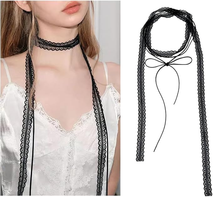 FASELE レースヘアバンド チョーカー ヘッドバンド レース ヘアタイ リボン ヘアタイ 多用途 ヘアアクセサリー ネクタイ ヘアバンド 飾り小物 優しい 森ガール レースベルト 帽子飾り ヘッドスカーフ スカーフ おしゃれ 日常 通勤 プレゼント 贈り物