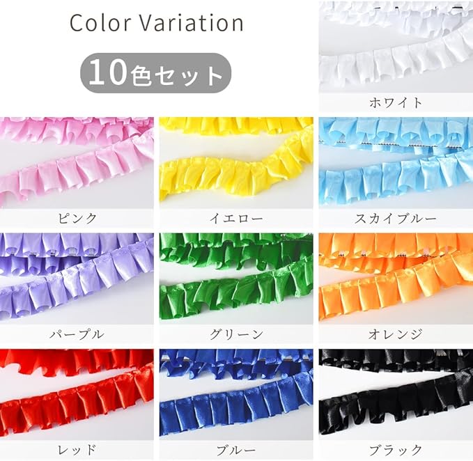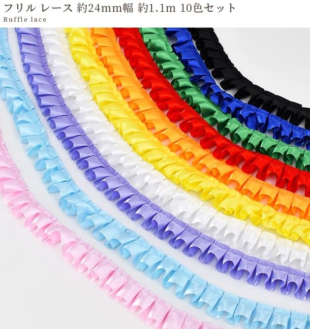 MYmama レース フリル 約24mm幅 約2.7m ゆめかわ 推し活 グッズ 装飾 手芸 (【10色セット】24mm幅、各1.1巻)