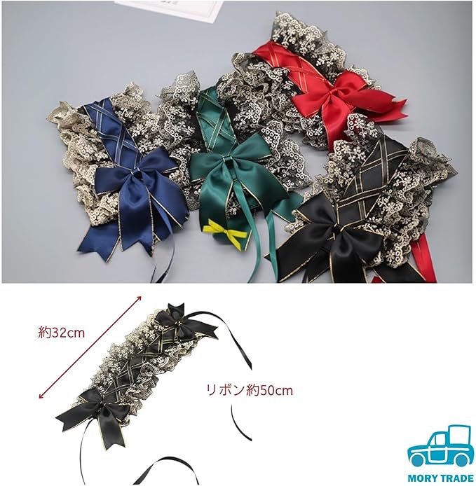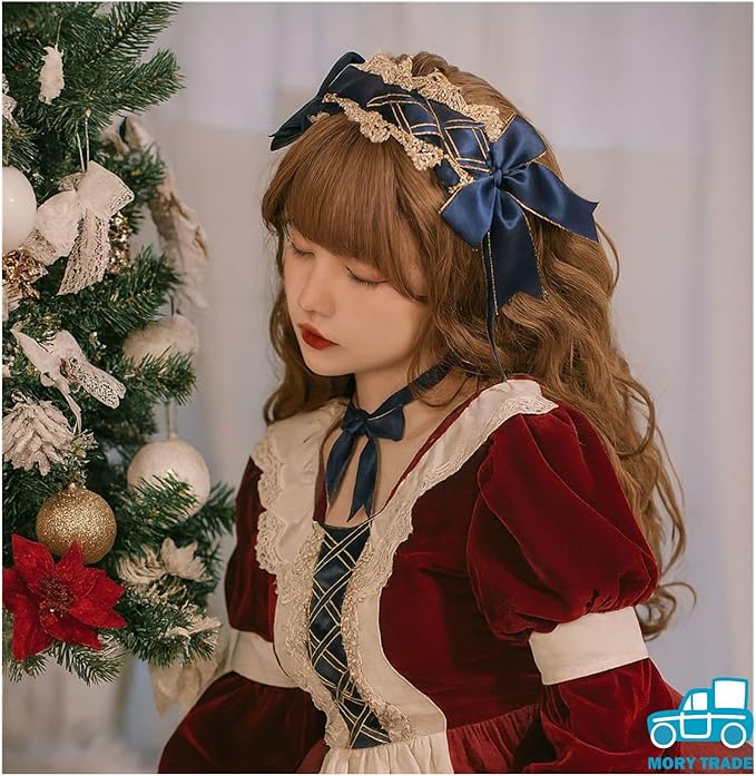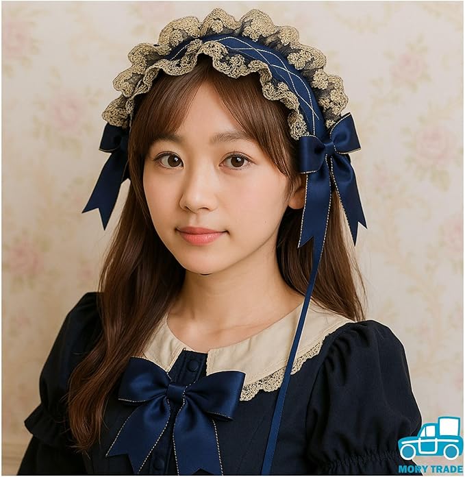 morytrade ゴシック ヘッドドレス レース リボン付き 髪飾り ビター系 ロリータ風 黒 ネイビー ハロウィン 撮影用 (ネイビーブルー)