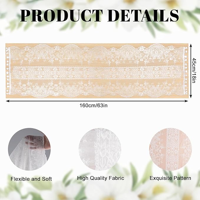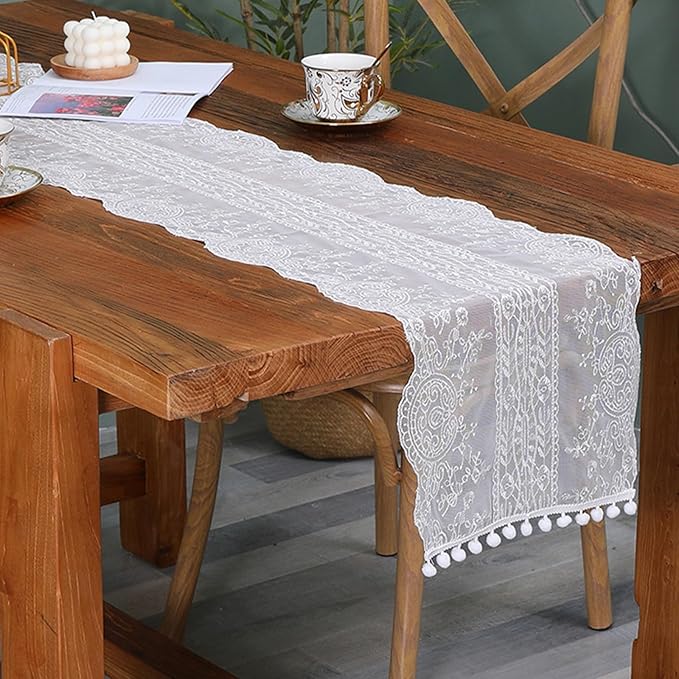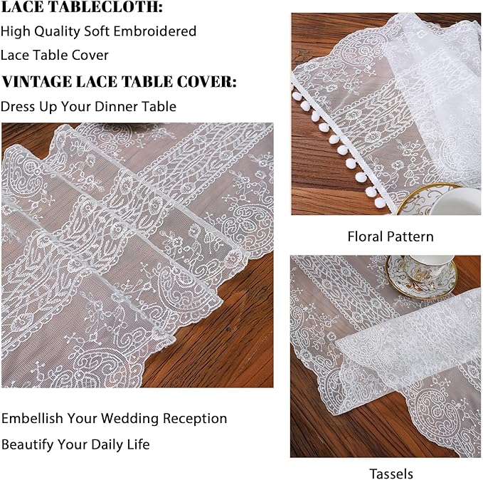 レーステーブルランナー, ロマンチックな中空ホワイトレースディナーテーブルクロス。エレガントなテーブルデコレーションカバー。ヴィンテージウェディングブライダルシャワーテーブルデコレーションに最適。, 160 30cm/62.99 11.81インチ。