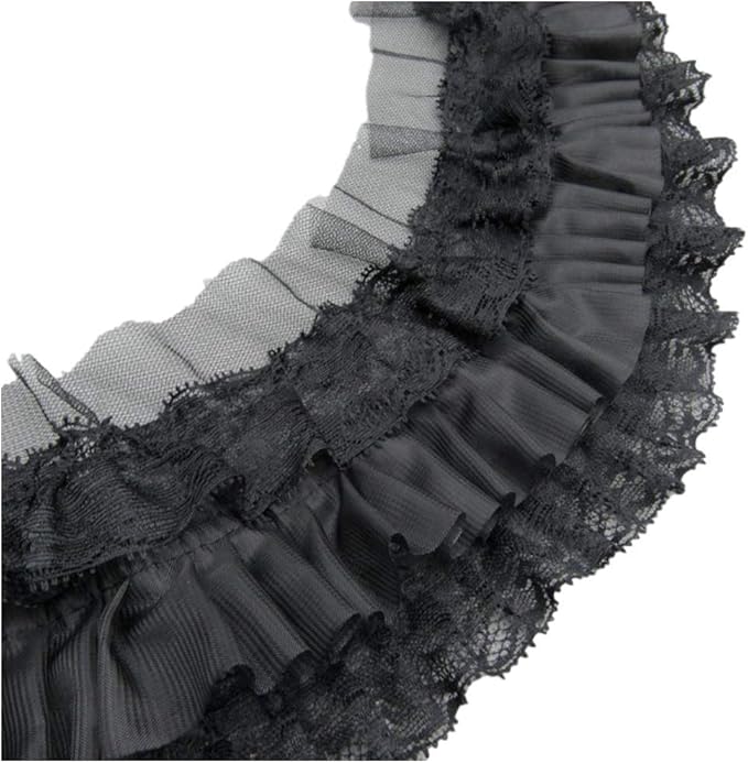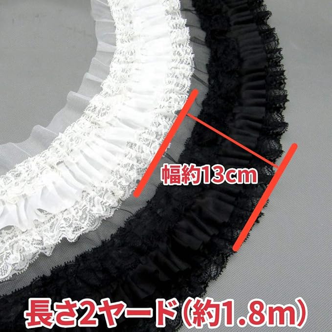 MORYTRADE レース 生地 チュール 手芸 リボン 花柄 レースリボン フリル 幅9cm 2ヤード 黒