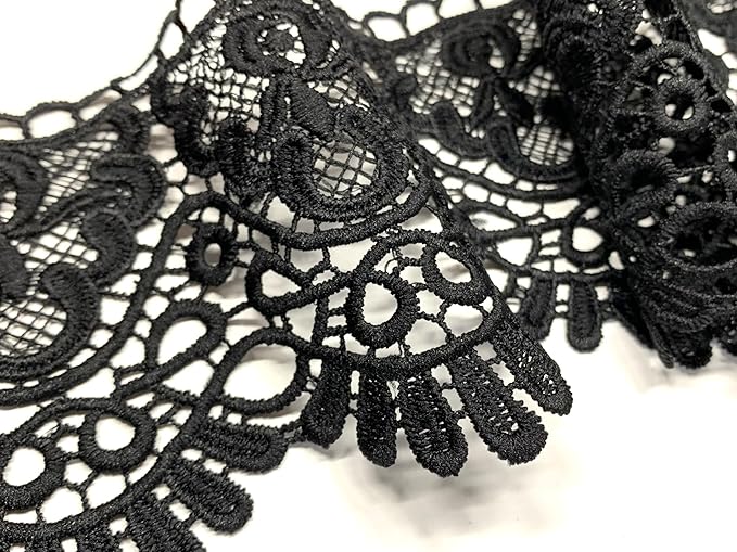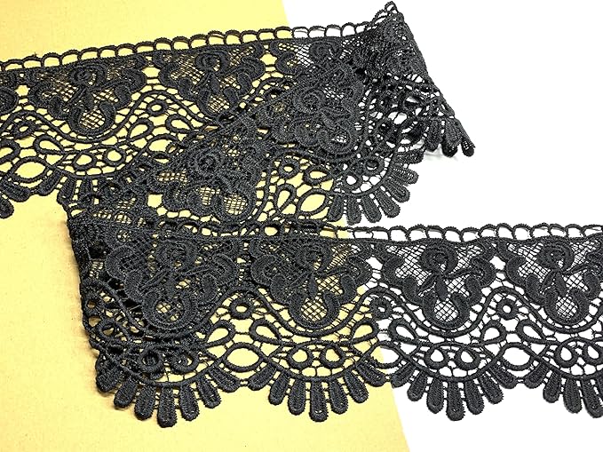 and.A レース フリル 幅10cm 3メートル 布 手芸 白 黒 端切れ ハンドメイド リメイク 材料 (黒)
