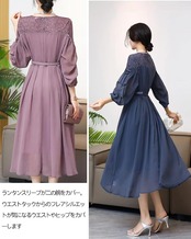 フォーマルシーン:結婚式のゲスト、結納パーティー、会社の年次会や表彰式など。肩のレースとストーンベルトが華やかさを演出し、フォーマルな雰囲気にマッチします。 カジュアルシーン:二次会、友達の誕生日パーティー、ディナーデートなど。ベルトを外したり、シューズをスニーカーに変えたりすることで、カジュアルなスタイルにもリメイク可能です。季節別対応:春~秋はそのまま着用し、冬はコートやカーディガンを羽織ることで、全年齢・全シーズンで活用できるドレスです。