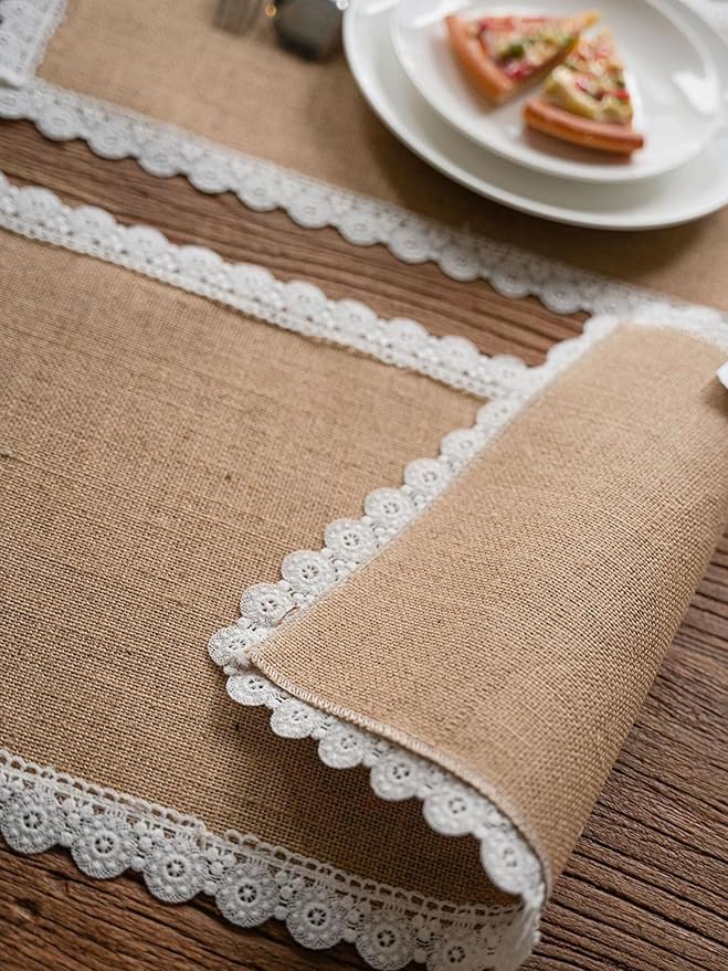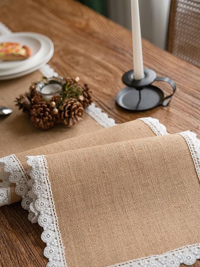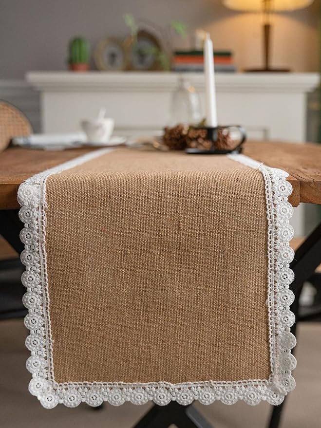 テーブルランナー 黄麻 レース 花柄 刺繍 リネン 無地 北欧 和風 食卓センター 細長い テーブルクロス 120CM (ドット柄)