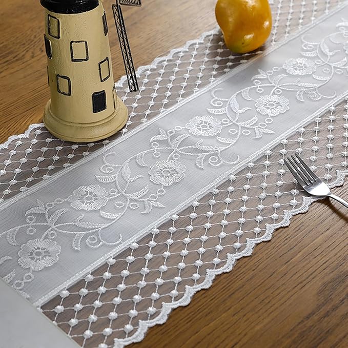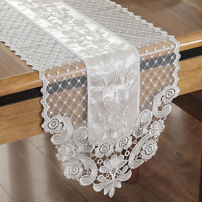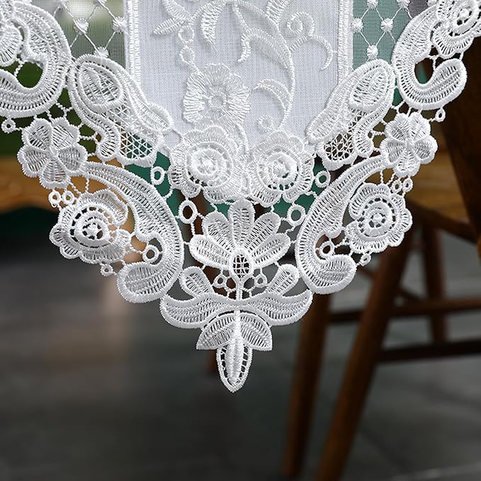テーブルランナー レース 白 刺繍 花柄 オシャレ テーブルセンタークロス 北欧 モダン 長方形 小さめ 30*90 (90)