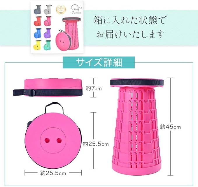 サイズ 最小展開サイズ: 25.5*25.5*7cm 最大展開サイズ: 25.5*25.5*45cm