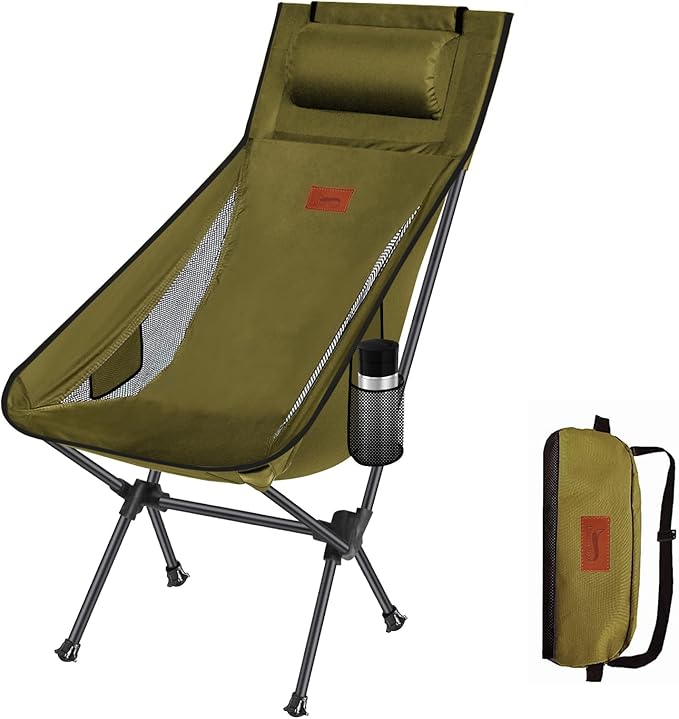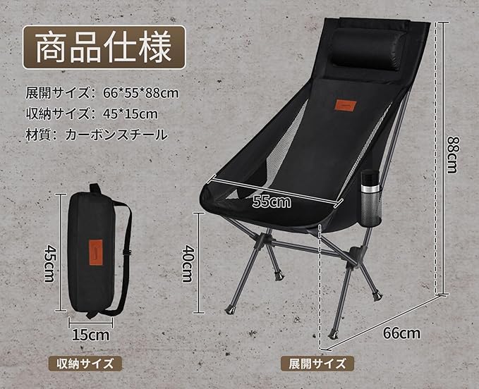 DesertFox キャンプ 椅子 アウトドアチェア 折りたたみ 枕付き 超軽量 【独自開発のカップホルダー】 【耐荷重150kg】 キャンプ チェア コンパクト イス ハイバック 椅子 いす 収納袋付属 お釣り 登山 携帯便利 0088
