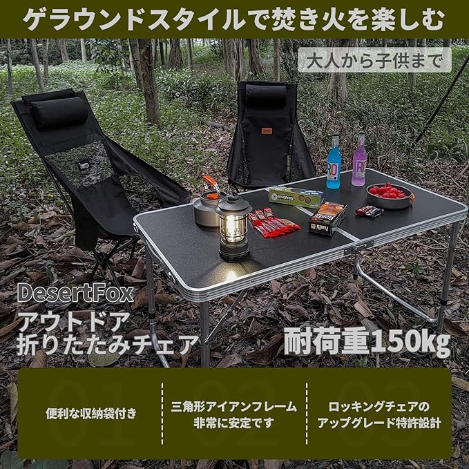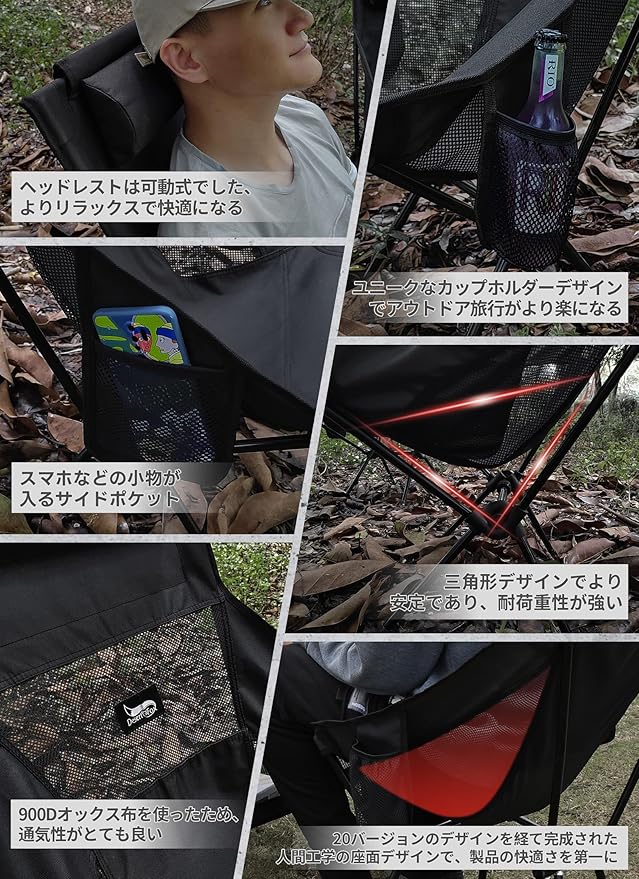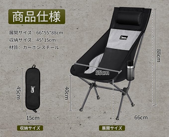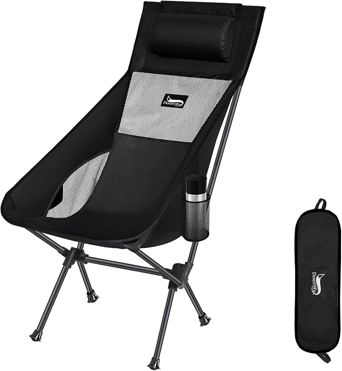 DesertFox キャンプ 椅子 アウトドアチェア 折りたたみ 枕付き 超軽量 【独自開発のカップホルダー】 【耐荷重150kg】 キャンプ チェア コンパクト イス ハイバック 椅子 いす 収納袋付属 お釣り 登山 携帯便利 0066