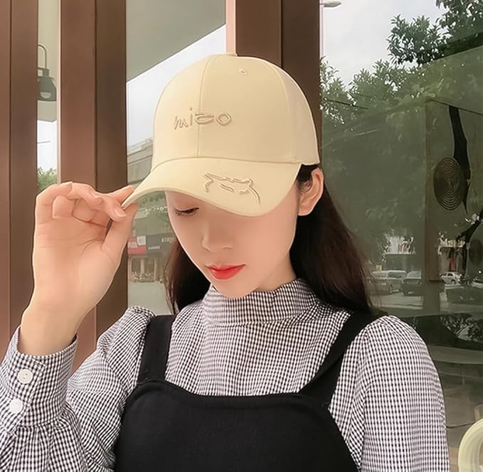 [Fintier] 男女兼用 オシャレな 猫 mico刺繍 キャップ コットン 紫外線対策 軽量 野球帽 カジュアル 調節可能 ベースボールキャップ アウトドア スポーツ 帽子 メンズ レディース