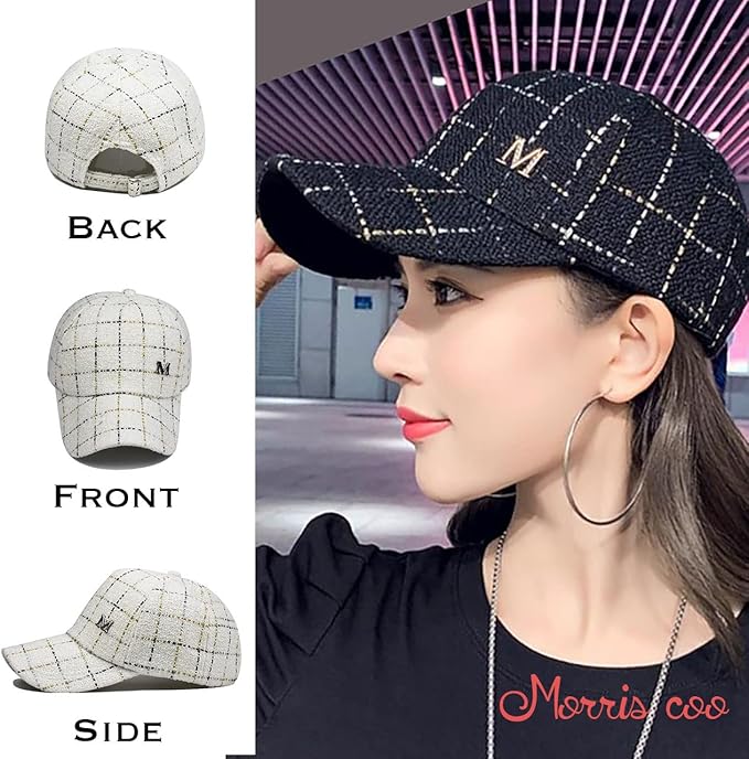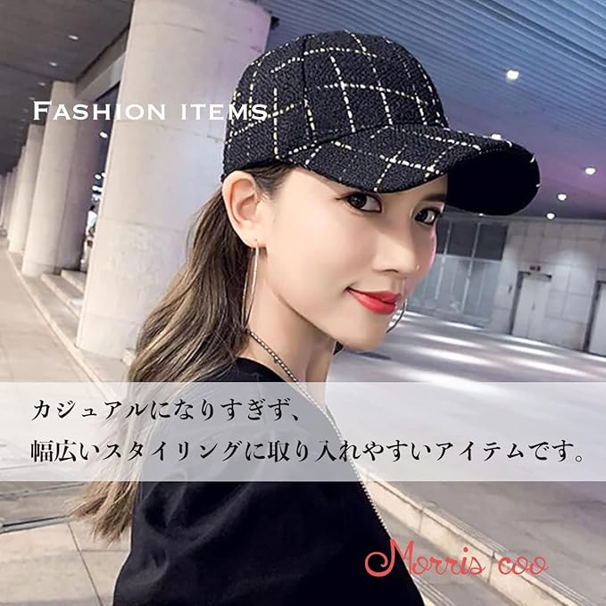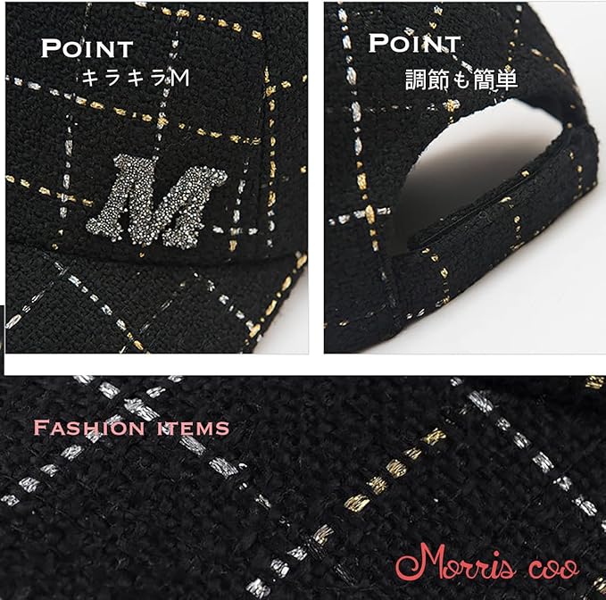 [Morris coo] [モーリスクー] レディース かわいい チエック柄 キャップ キラキラ ワンポイントカジュアル 帽子 ゴルフ 調整 アウトドア