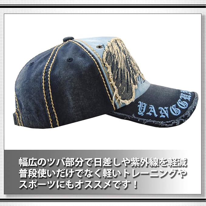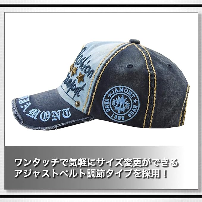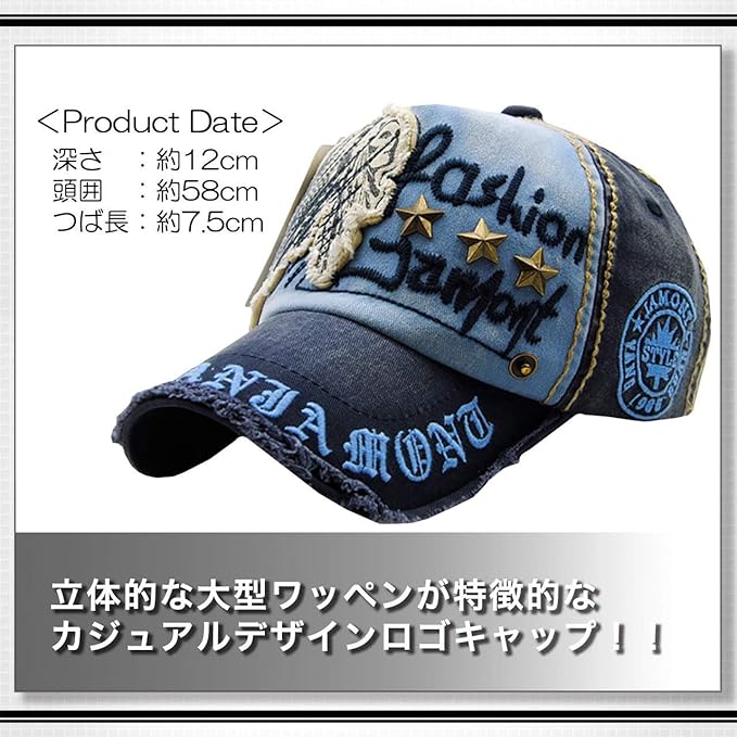 ダメージ加工を施し ヴィンテージ 感のある雰囲気に仕上げた おしゃれ で かっこいい メンズ キャップ !大きなワッペン 刺繍加工 スタッズ 加工が散りばめられた 王道 アメカジ デザイン