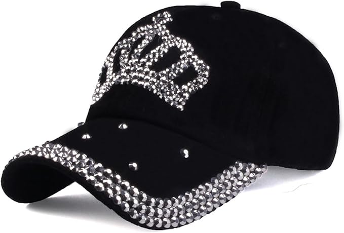 [Morris coo] カッコかわいい キャップ カジュアル キラキラ ラインストーン ダメージデザイン 帽子 ゴルフ ブラック デニム