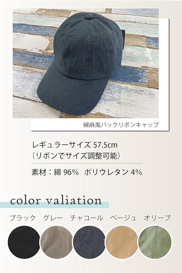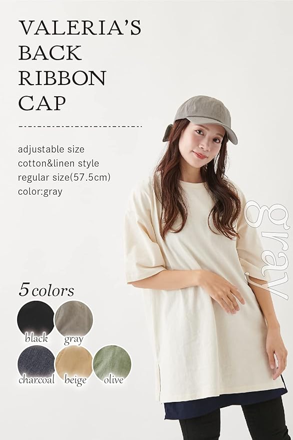 [valeria] [バレリア] バックリボン キャップ 【サイズ調整可能】 綿麻風 55.5~57.5cm レギュラーサイズ レディース ローキャップ