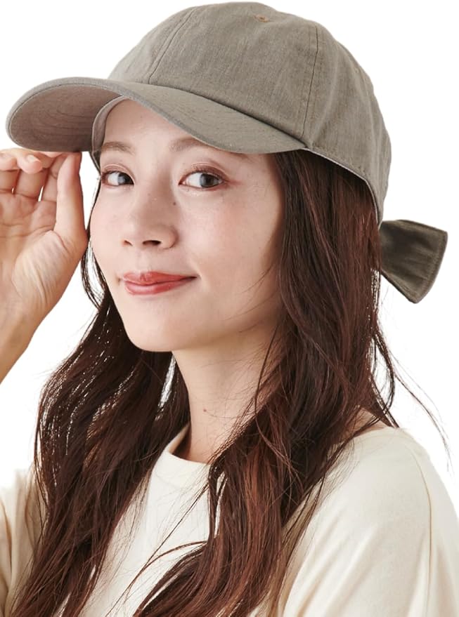 ◆涼しげでナチュラルな風合いを生かした、コットンリネン風のキャップです。サイズ調整が可能なバックリボンは、おしゃれと便利を兼ねているデザインです。浅めのフォルムに、可愛いバックリボンが女子力高めな印象。リボンの上からポニーテールの髪を出すと、とっても可愛いです♬