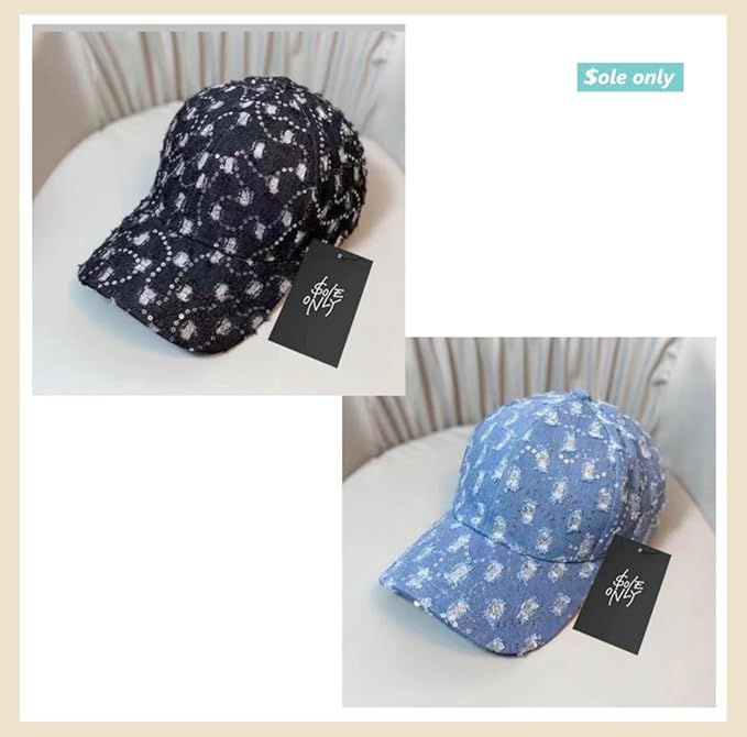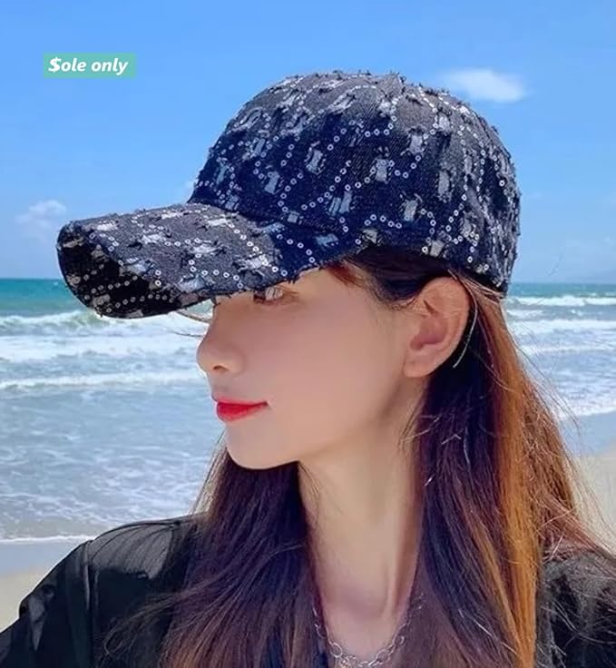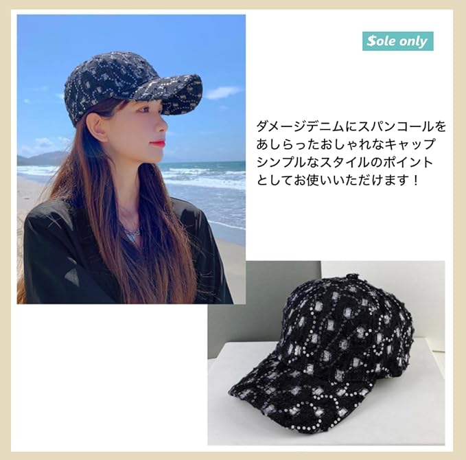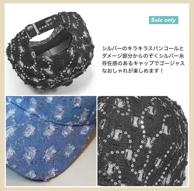 [$ole only] ソールオンリー 帽子 キャップ キラキラ スパンコール デニム ダメージ メンズ レディース ユニセックス カジュアル おしゃれ 韓国ファッション ストリート系 帽子 アウトドアカジュアル フリーサイズ かっこいい ブラック ブルー