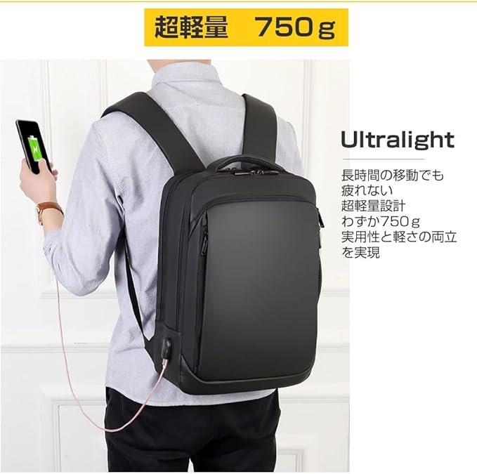 USBポート付きで外出中リュックを開けずにスマホ充電が可能!