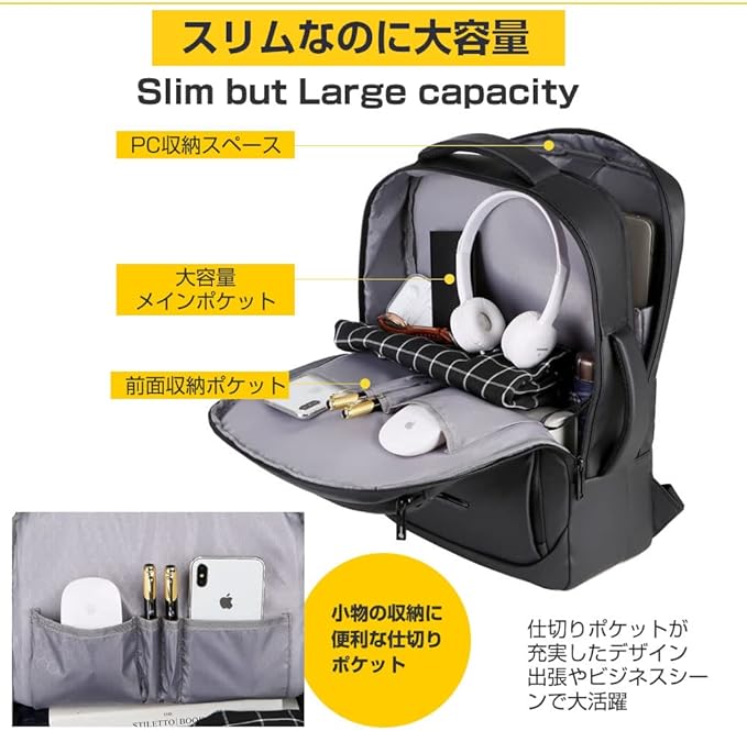 互換品 富士通 FMV LIFEBOOK AHシリーズ WA1/F1 [15.6インチ(1366x768)] で使えるビジネスリュックと液晶保護フィルムの2点セットです。ビジネスリュックは仕切りポケットが充実したデザイン出張やビジネスシーンで大活躍!