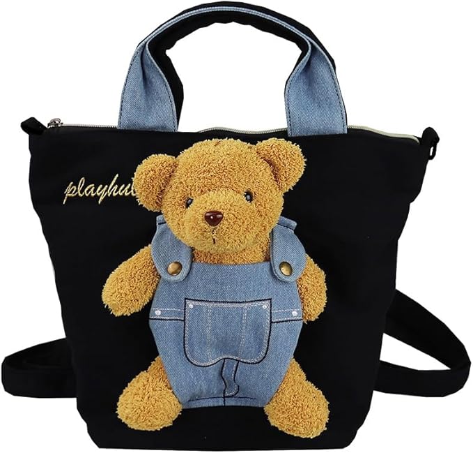 クマのぬいぐるみがついた3WAYトートバッグ。