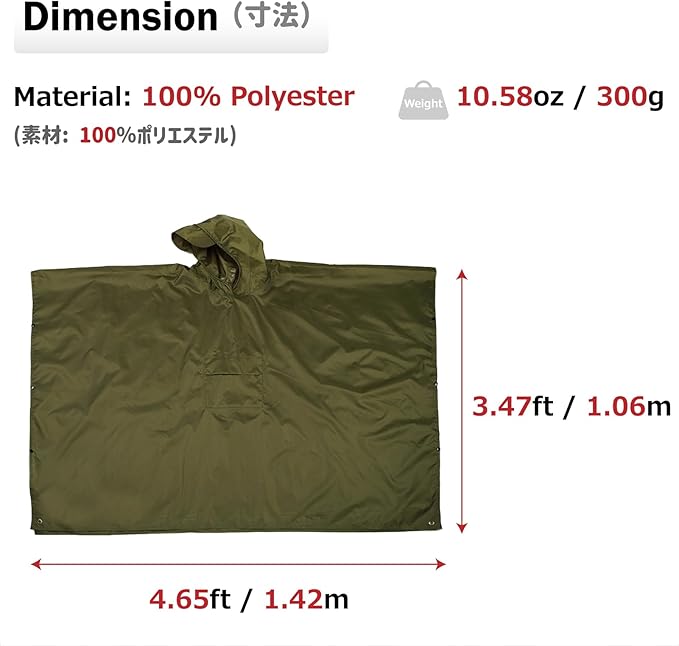 ✅【フリーサイズポンチョ】長さ:106cm、幅:142cm、収納サイズ:14 17 (cm)、重量:300g、男女兼用。自転車対応、リュック・バックパックを背負った時も着用できま