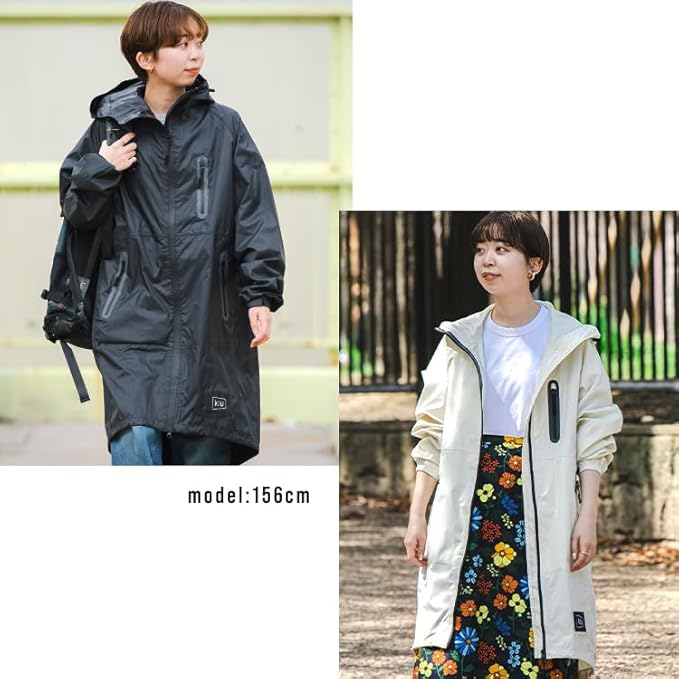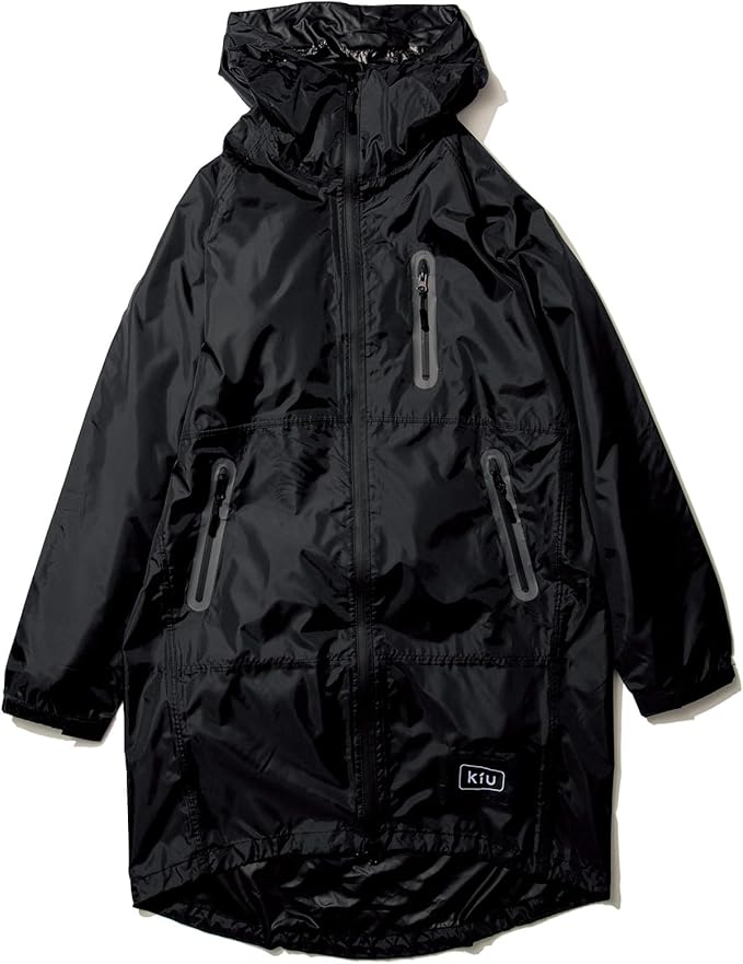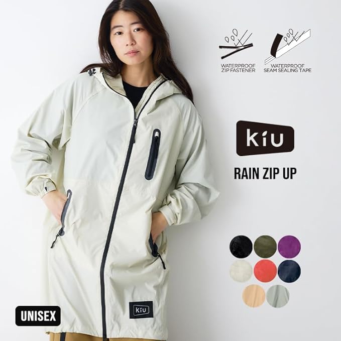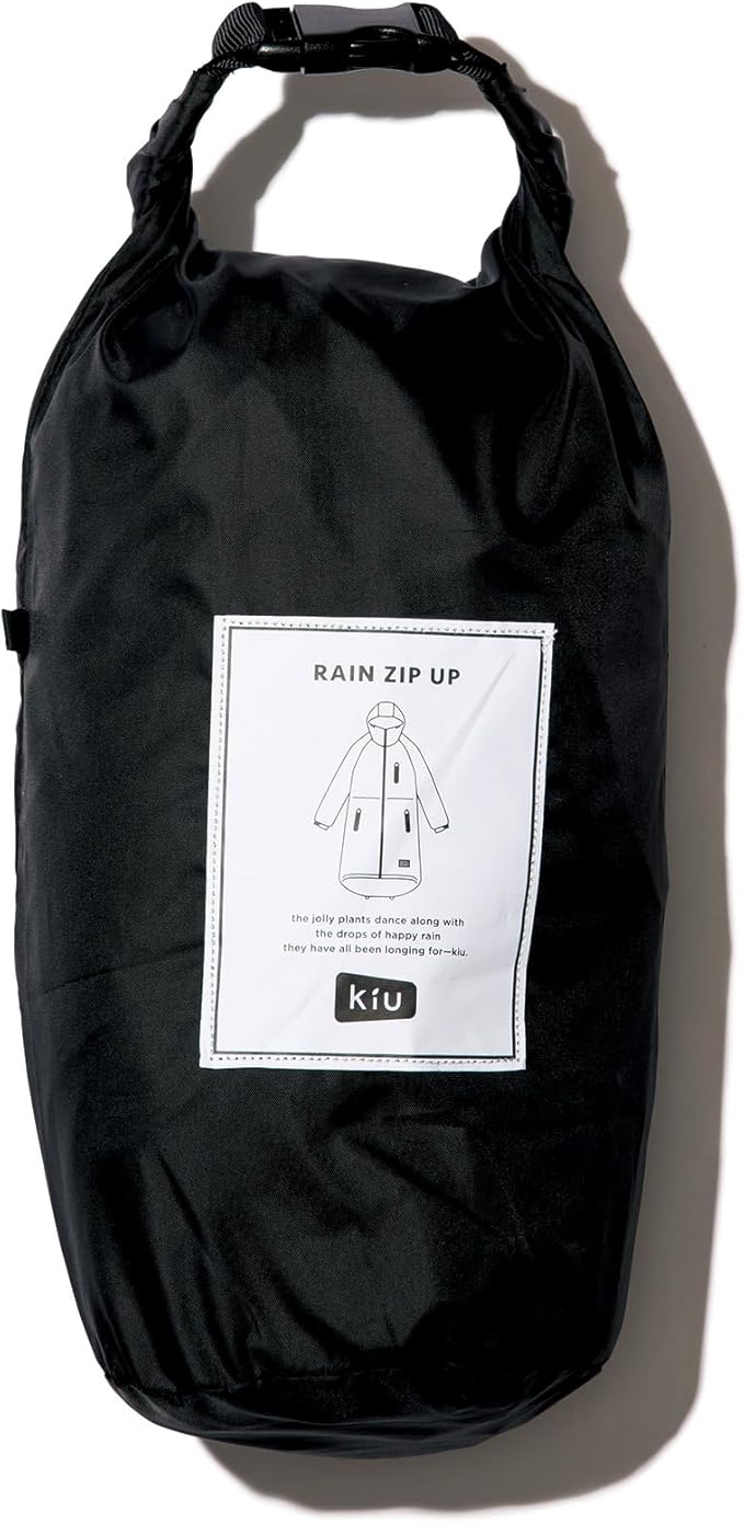 KiU【2024】キウ 軽量 雨対策 収納袋 持ち運び簡単 はっ水 防水 シンプル かわいい おしゃれ メンズ レディース 男女兼用 レインコート レインジップアップ ブラック K116-900