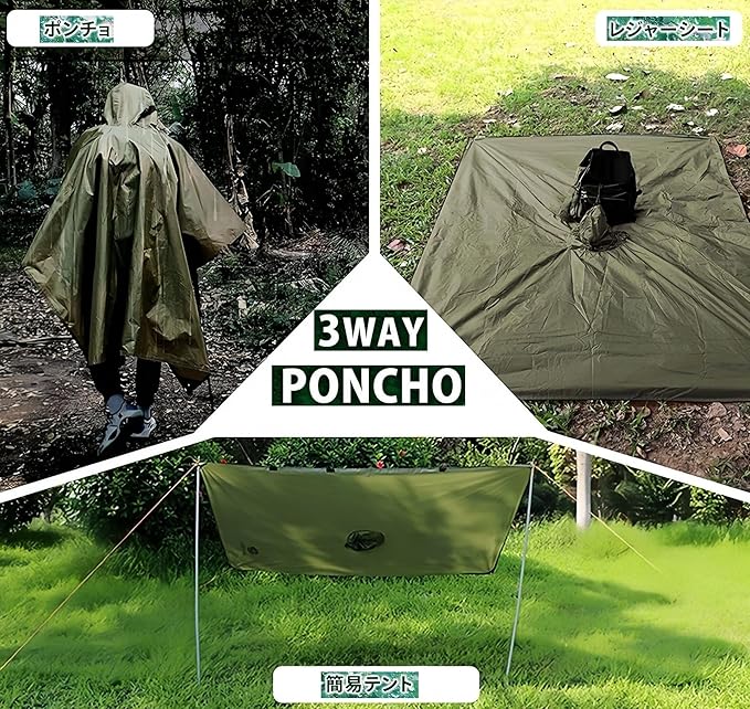 [aspersio] [アスペルシオ] アウトドア レインポンチョ 3way レインコート 薄型 収納バッグ付き コンパクト 雨具 レジャーシート 簡易テント