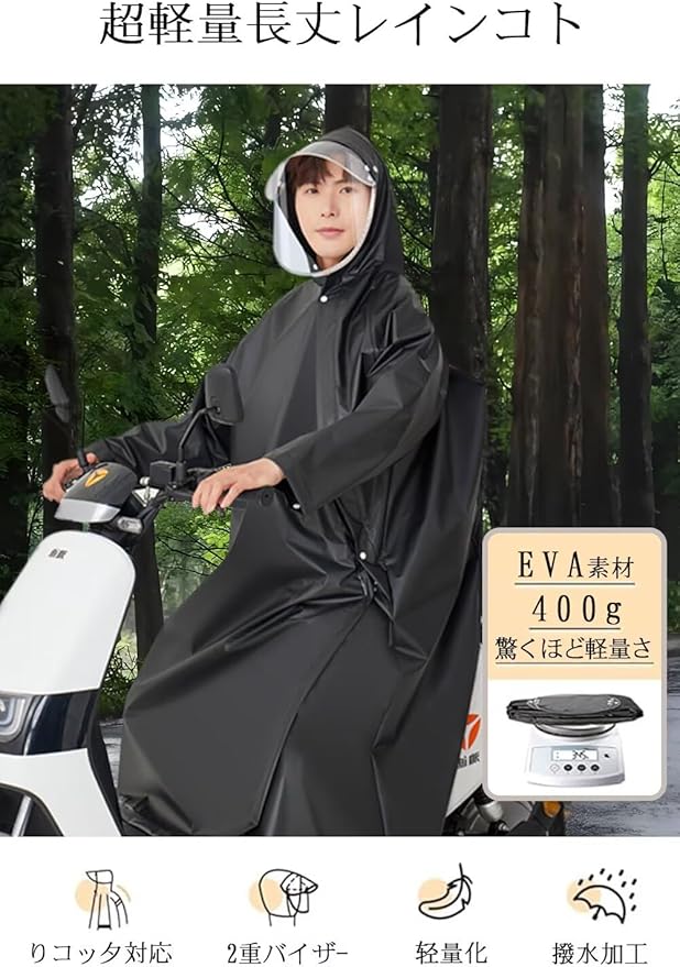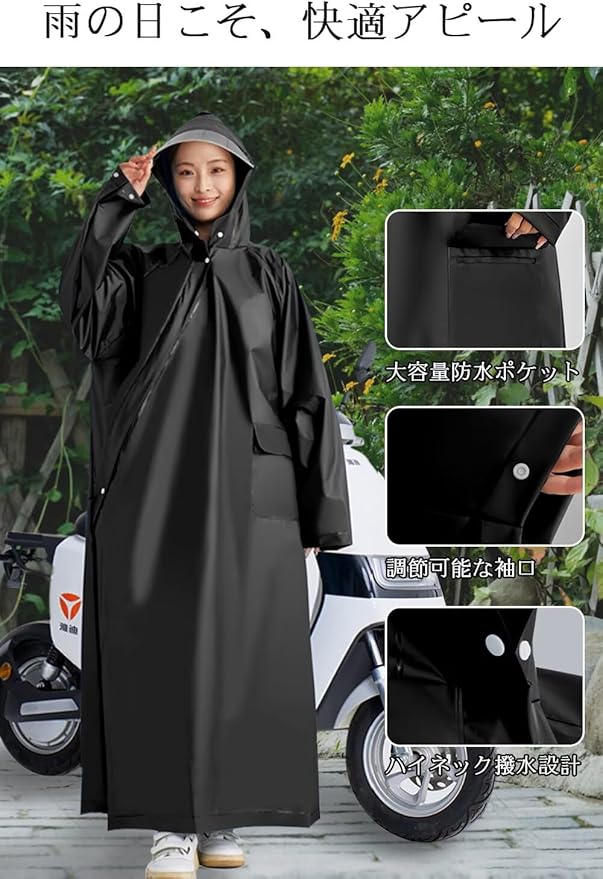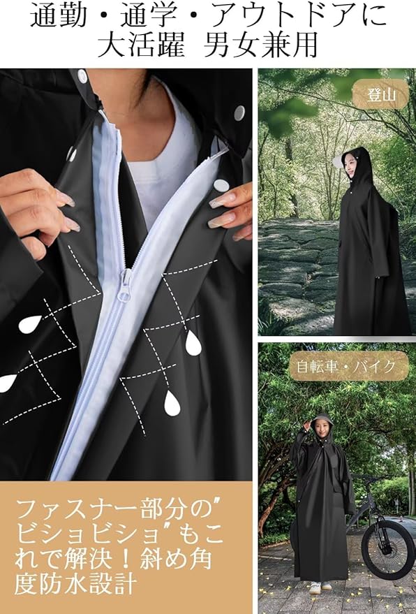 [KEZATAAK] レインコート 自転車 2025新設計 斜めファスナー レインコート レディース メンズ リュック対応 カッパ ポンチョ ポケット付き 2重防水 撥水 防風 レインウェア 通勤 通学