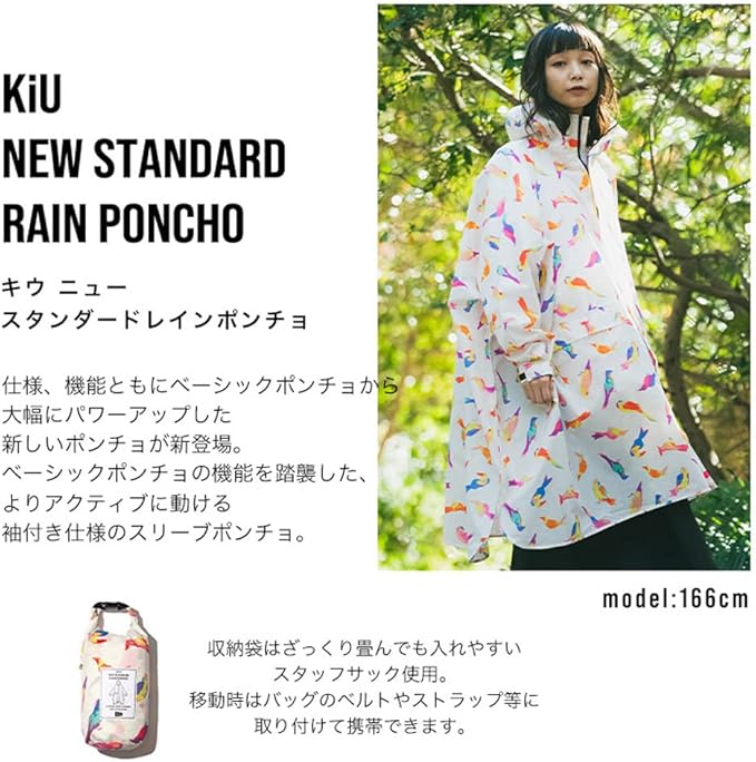 【2022】KiU 豪雨対応 自転車 台風 袖付き ポンチョ はっ水 防水 メンズ レディース ニュースタンダードレインポンチョ ベージュ K163-911