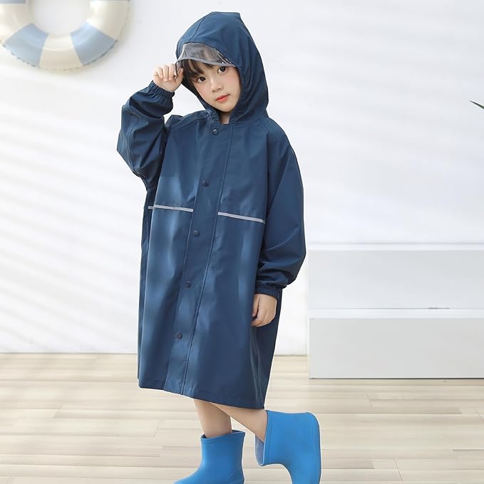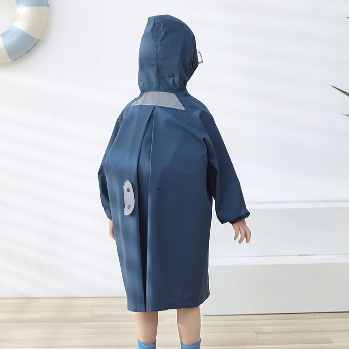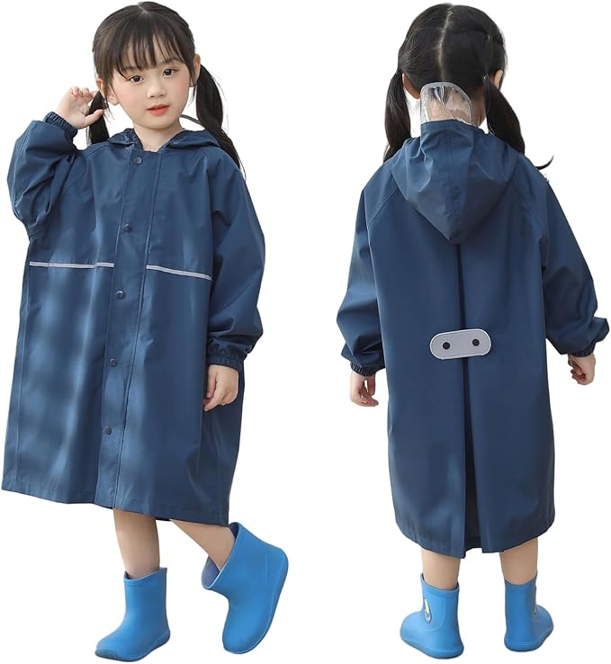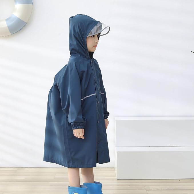 【安全なデザイン】レインコートには、視界を広げる透明な大きなバイザーが装備されており、顔や目を雨から効果的に遮ることができます。背部のランドセルを入れるスペースは、普段使いはボタンで折りたたむことができるので、快適です。