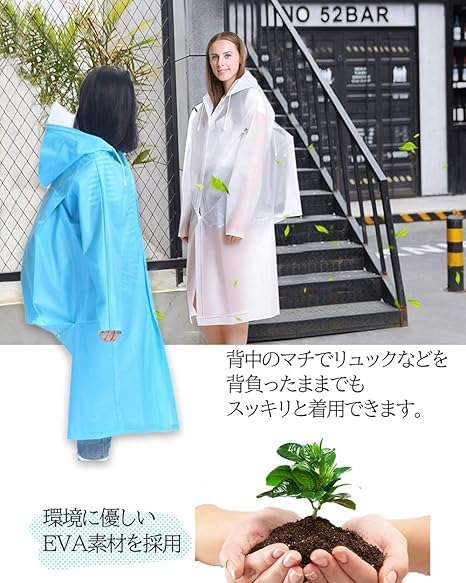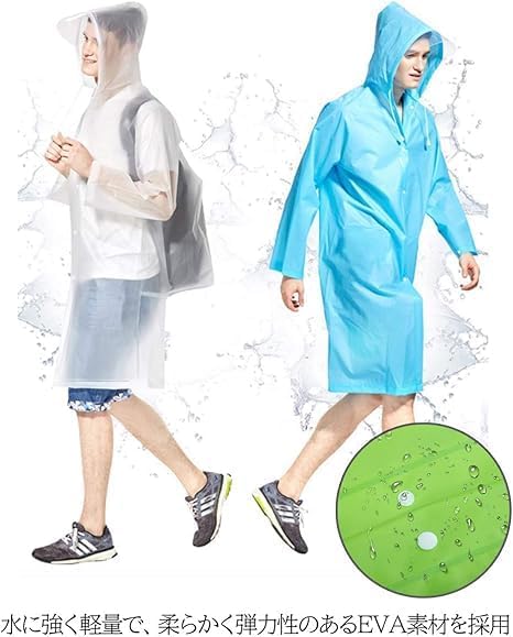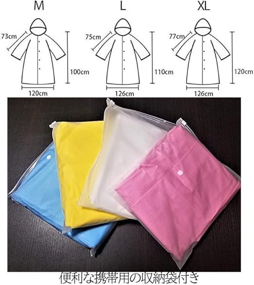 ・【強力な防水性】水に強く軽量で、柔らかく弾力性のあるEVA素材を採用しています。EVAは塩素を含まず燃やしても有害物質が発生しないため、地球環境に優しい素材として注目されています。 ・【優れた携帯性】上下セパレートのレインスーツに比べて軽量・コンパクトで持ち運びに優れています。登山やトレッキングなどのアウトドア、野外でのフェス、スポーツ観戦、普段の通勤・通学でもカバンに入れておけば安心です。 ・【快適な使用感】携帯用の収納袋から取り出してさっと羽織るだけで使えるため簡単です。フードにつけられた透明のツバ、首元のドローコード、袖口のスナップボタンなど、雨に濡れにくい工夫がされています。 ・【カラー】ホワイト、ピンク、グリーン、ブルー、イエロー 【素材】EVA ・【サイズ】M(着丈 102 胸囲 138 袖丈 73 裾幅 120 適応身長:155 - 165 cm)L(着丈 110 胸囲 138 袖丈 75 裾幅 126 適応身長:165 - 175 cm)XL(着丈 120 胸囲 138 袖丈 77 裾幅 126 適応身長:175 - 185 cm)