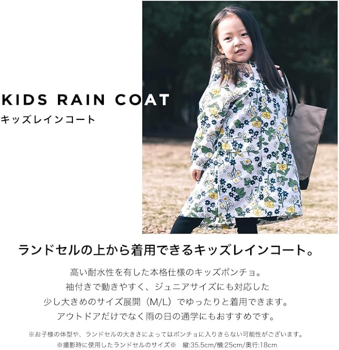 [キウ] 大雨対応 キッズ 袖付き 台風 コート はっ水 防水 レインコート 無地 フローラオフ K137M-050