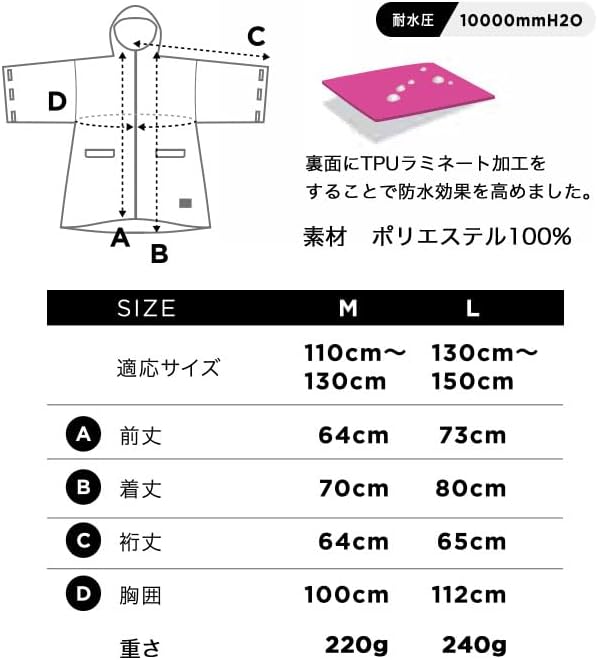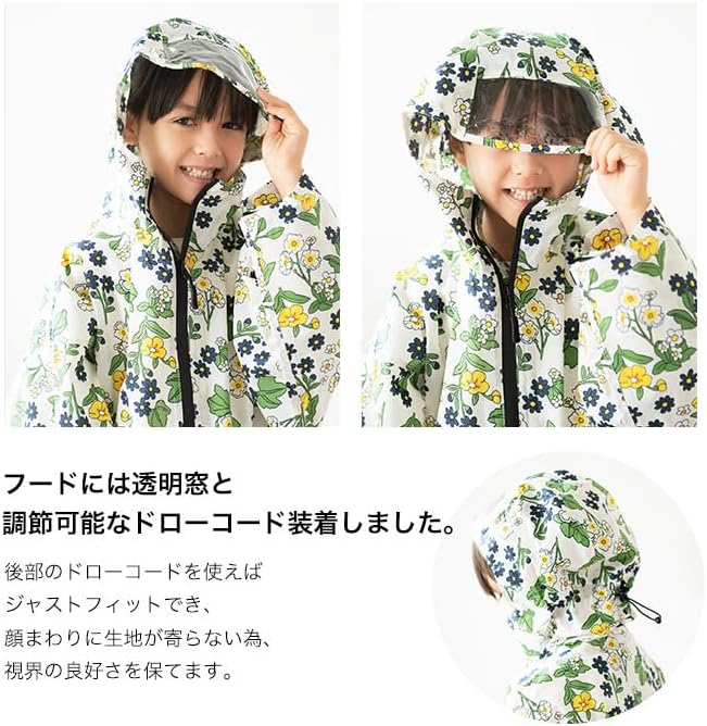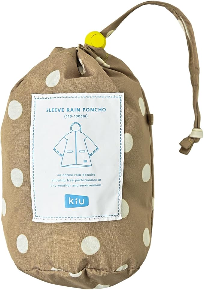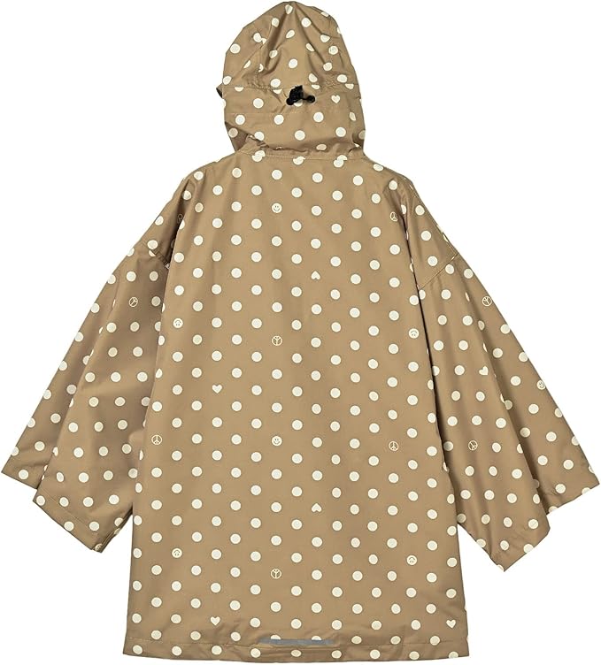 [キウ] 大雨対応 キッズ 袖付き 台風 ポンチョ はっ水 防水 レインポンチョ ピーズドットベージュ K71M-298