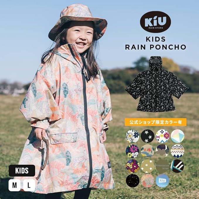 ゆったりと着用できる袖付き・2サイズ展開のキッズポンチョ