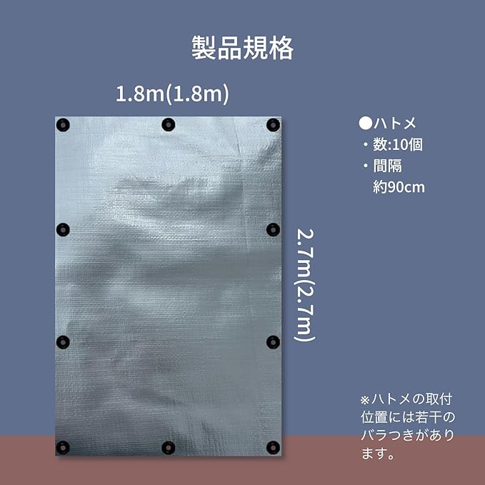 ●紫外線に対する耐候剤を添加し、耐候性の良いシルバー色でラミネートした長期の屋外使用に耐える防水シートです。