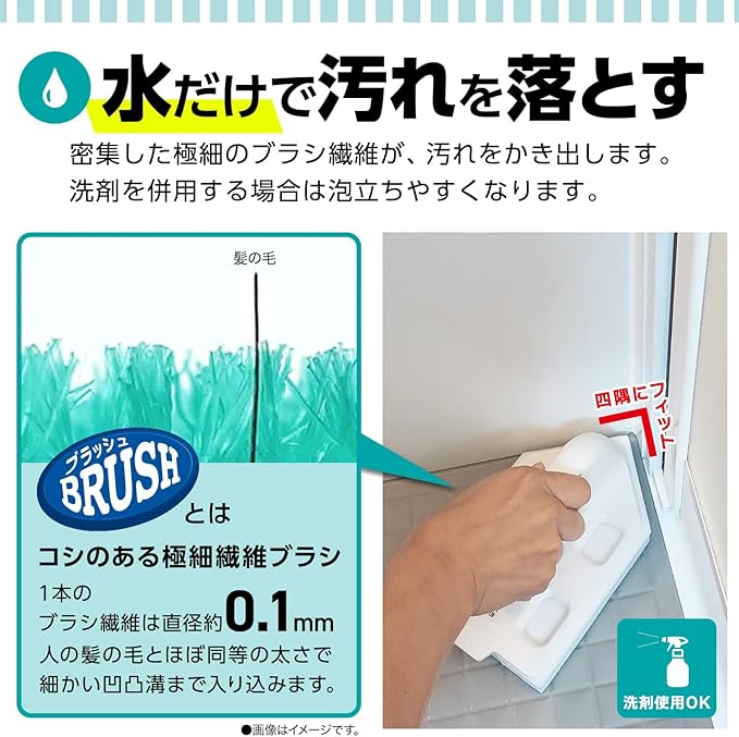コシのある直径約0.1mmの極細繊維ブラシが水だけでも汚れをかき出します。
