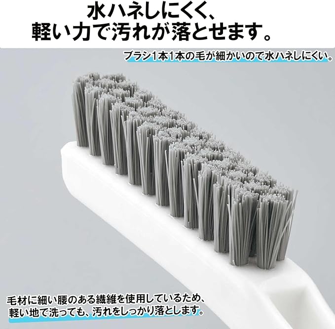 ブラシ部分に細い腰のある繊維を使用しているため、軽い力で洗っても、汚れをしっかり落とします。