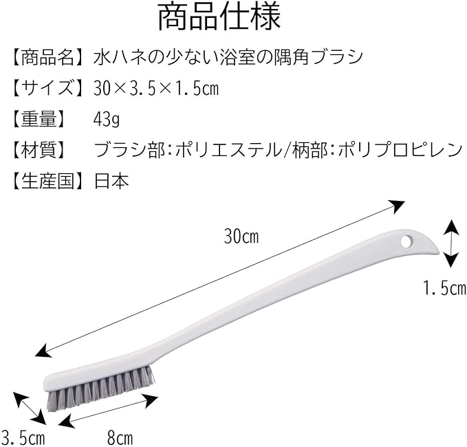 バスブラシで届きにくい隅・カドのお掃除に最適なスリムなブラシです。