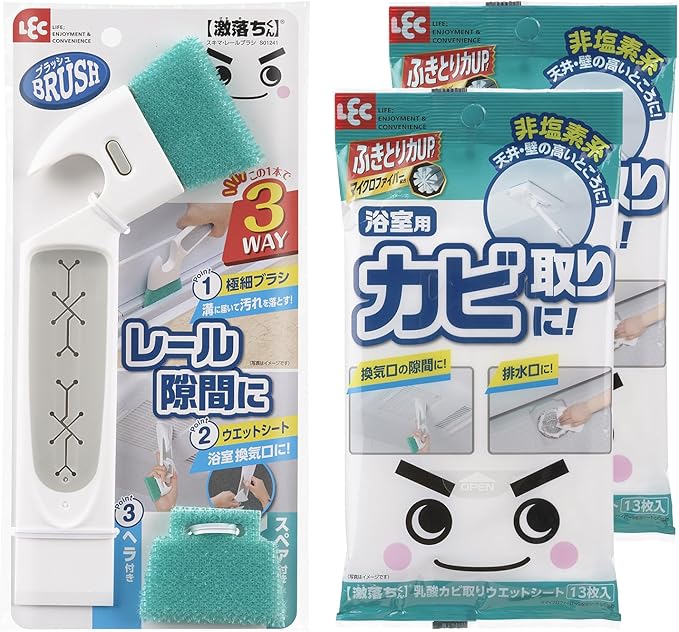 レック 激落ちくん すき間 ・ レール ブラシ (スペア付) & 浴室用 カビ取り シート 2パック セット