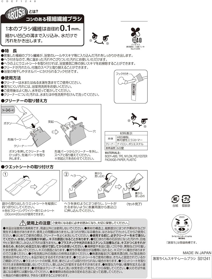 ●浴室のレールや隙間を掃除するブラシと、カビ取りシートのセット商品です。