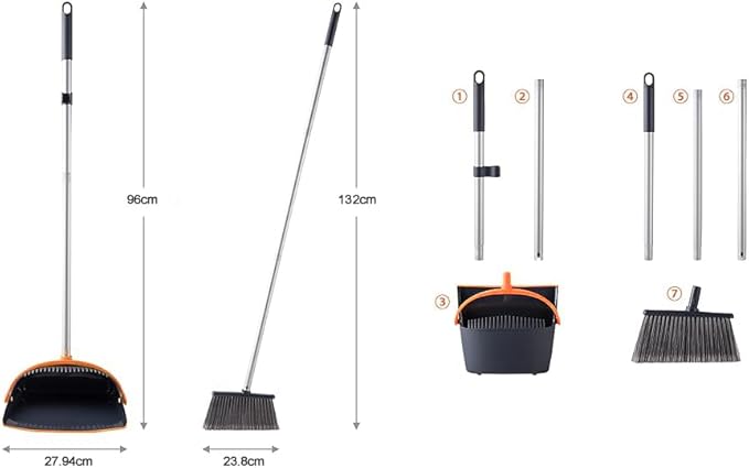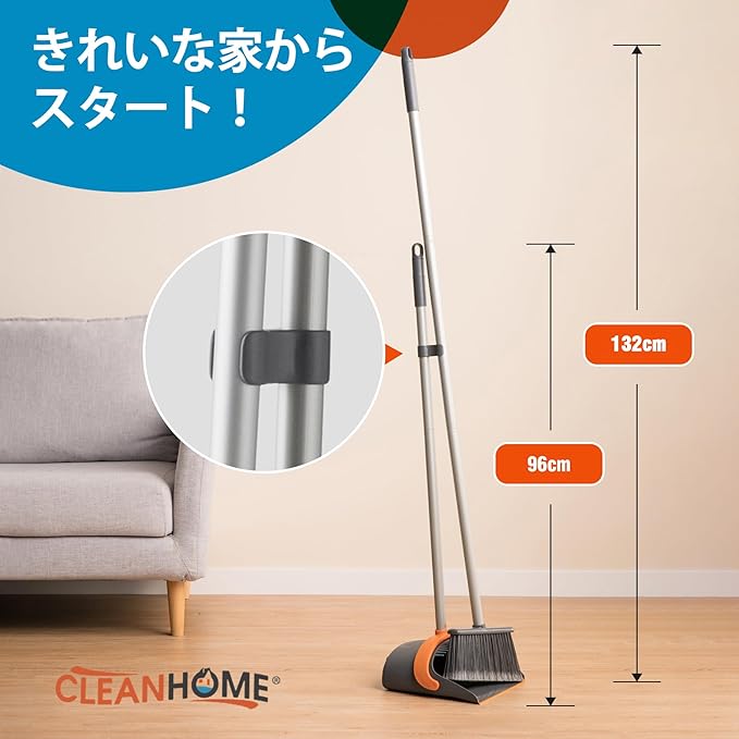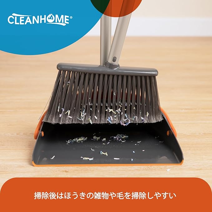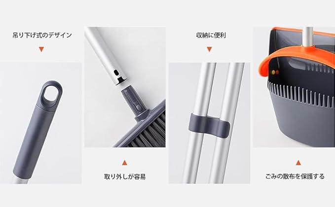 【自由調節 延長ポール付き】ほうきちりとりは人体デザインに適合、ほうきの高さは95〜127 cm、曲げの問題に別れを告げる、一本の延長ポールが付いていますので、ほうきにもちりとりにも使用でき、場所によってご自由に組み合わせます。例えば、天井を掃除する時は延長ポールを使用して長さは127cmになります。【適用場所】おしゃれなデザインで幅広く使用され 石床も木床も、部屋、屋外、玄関、ベランダ、美容室、コンビニ、会社、庭、ガレージ、ペットショップ 学校どが掃除できます。