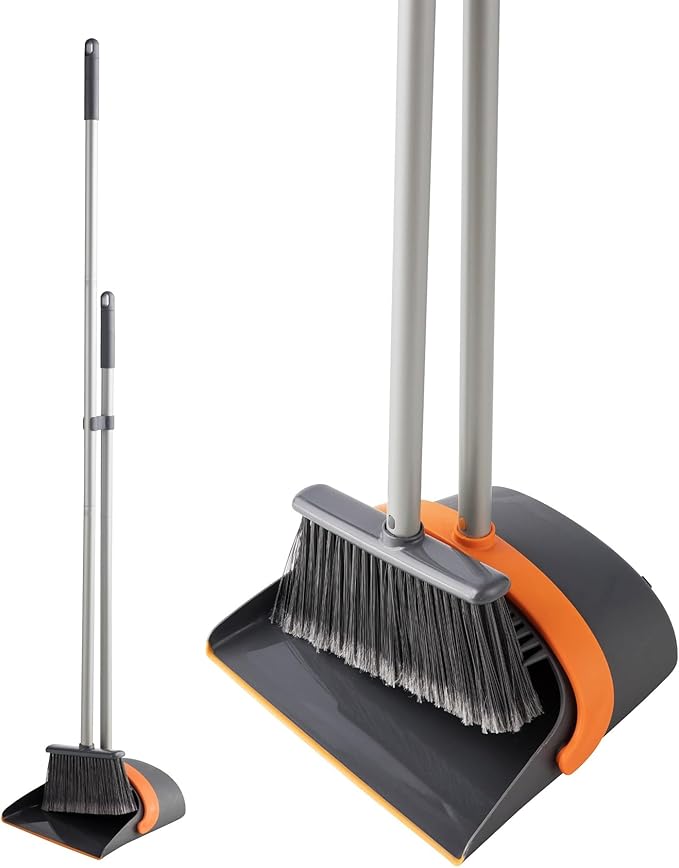 ほうき ちりとり セット ほうき 室内 屋外 立て式 掃除セット 127cm 調節可能 コンパクト 収納 防風式 軽量 腰曲げず 掃除用品 玄関 ガーデニング 庭 ベランダ 美容室 コンビニ適用(オレンジ)