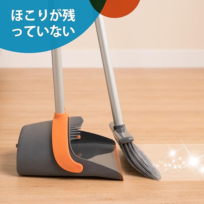 【品質高いほうきちりとり】ほうきは4層PETの織り込み密度が高く、柔軟性の高い毛先に最適です。広い範囲で掃除ができます。4層の織物は効率よく掃除できます。寿命が長く、水洗いもできます。とても便利です。ほうきにはアークがあり、ごみをきれいにしやすく、ちりとりの底のTPR材料は地面に近く、細かいごみをうまく制御できます。数多くの種類の汚れ、ほこり、破片、ペットの髪などが掃除できます。