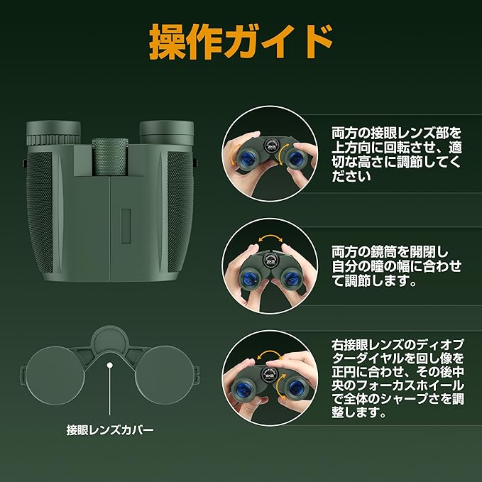 【充実の付属品&安心のアフターサービス】 付属品は双眼鏡*1、重専用収納ポーチ*1、レンズクリーニングクロス*1、首に掛けられるストラップ*1、日本語取扱説明書*1、カラーボックス*1を標準装備!即日発送に対応しておりますので、急なイベントや旅行にもすぐ届く!1年間のHOT保証に加え、24時間日本語カスタマーサポートで、製品に関するご質問や不具合など、いつでも専門スタッフが対応いたします。