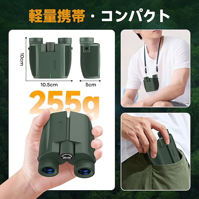 【ユニバーサル設計・超軽量350g】 瞳距調整可能なデザインで、子供から大人、メガネユーザーまで、誰もが最適な視野を楽しめます。驚異的な軽さ!革命的な350gの超軽量ボディで、片手でもしっかり保持可能。コンパクトに折り畳めば手のひらサイズになり、ポケットやバッグにスッキリ収納。ストラップと収納袋を付属しており、ライブでの鑑賞、スポーツ観戦、バードウォッチングなど、あらゆる場面ですぐに取り出して使用できます。