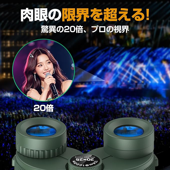 双眼鏡 ライブ用 オペラグラス 15倍 【BAK4プリズム&革命的FMC多層コーティング】 手ブレ補正 軽量 コンパクト 防水防塵 近視対応 ドーム/コンサート/ライブ/スポーツ観戦用/バードウォッチング 日本語取扱説明書 (グリーン)