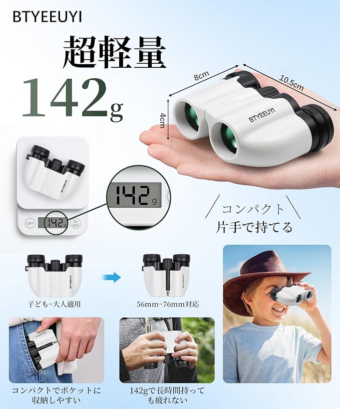 【超軽量142g&目幅調整可能】わずか142gと軽量で、持ち運びにも便利、片手で持ち続けても疲れません。目幅調整可能なデザインで、子供から大人、裸眼まで快適な体験が得られ、メガネをかけたままでも快適に使用で、家族全員が最適な視野を楽しめます。