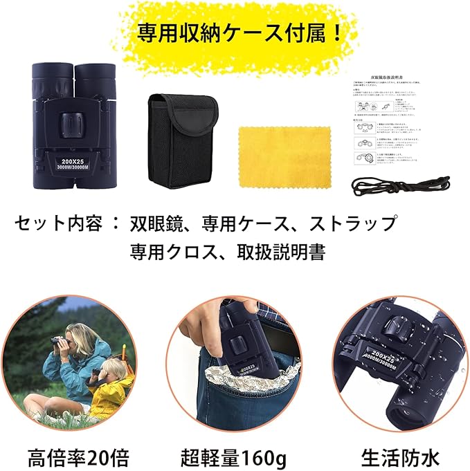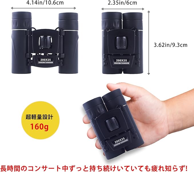 双眼鏡 ライブ用 オペラグラス スポーツ観戦用 コンサート用 20倍 望遠鏡 小型 超軽量 観劇 倍率調整可能 双眼鏡 コンサート用 防水 収納ケース付き 日本語説明書 ブラック